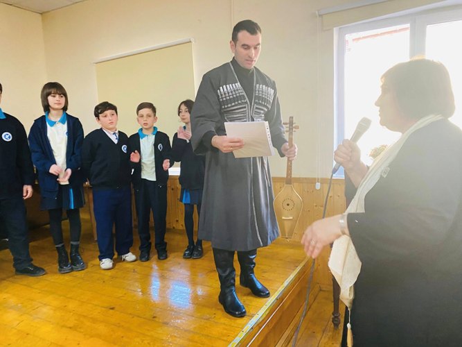 ამაღელვებელი იყო მოსწავლეთა მიერ წაკითხული უკვდავი სტროფები ,,ვეფხისტყაოსნიდან”. საღამოს სამტრედიის სალოტბარო სკოლის მოსწავლეთა მიერ შესრულებული საგალობელი და ფოლკლორული ნიმუშები ერთვოდა.