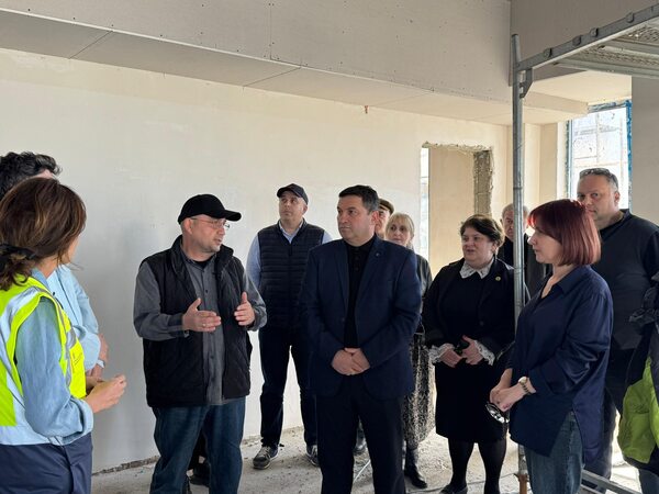 დავით ბახტაძემ ქ. სამტრედიის №4 საჯარო სკოლაში მიმდინარე ახალი სკოლის შენობის სამშენებლო სამუშაოები დაათვალიერა